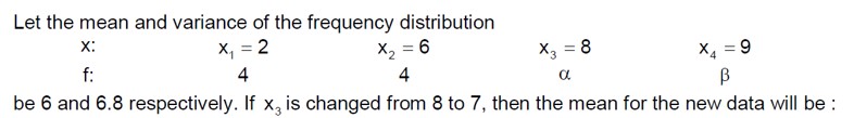 mean = Σx? f? /Σf? = (32+8α+9β)/ (8+α+β)=6
