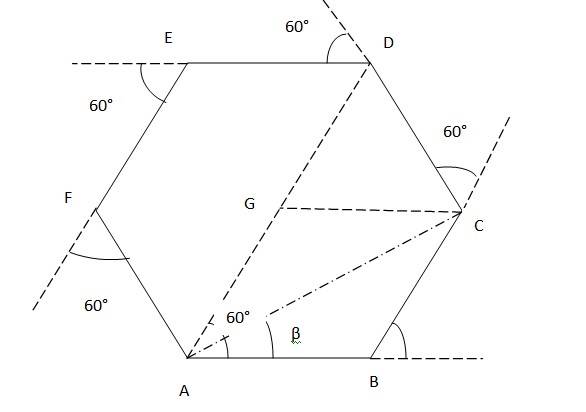 Suppose the motorist starts from point A. From A, turns 60° to reach B (first turn), then to C and so on.