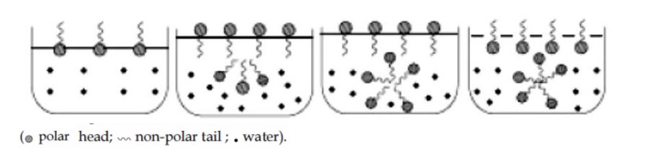 At CMC, the particles cluster together through lyophobic end to form associated colloid called micelle. Further all lyophilic ends (polar head) get projected towards water.