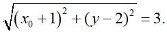 ⇒ (x0 + 1)2 + (y? 2)2= 9