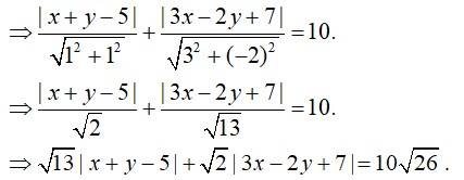 Given, sum of perpendicular distance of P (x, y) from the two lines is always 10 .