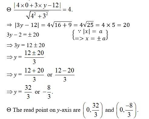 58. Let (0, y) be the point on y-axis which is at a distance 4 unit from the line