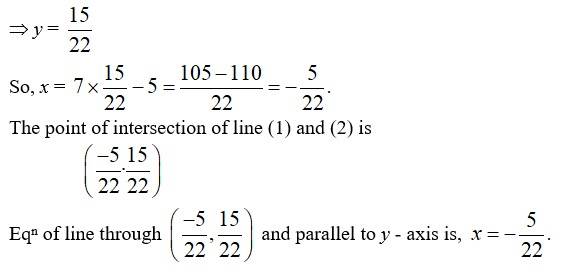 x - 7y + 5 = 0 ______ (1) ⇒ x = 7y - 5