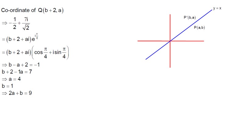 ⇒ 1/√2 + 7i/√2 = (b+2+ai)e^ (iπ/4)