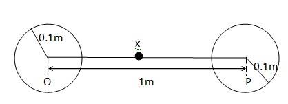 Gravitational force at point x will be zero. This is because gravitational force exerted by each spheres will act in opposite directions.