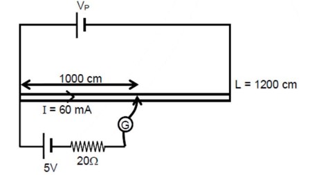 Potential gradient = 2.08V/100cm = 0.0208 V/cm.