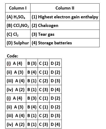 CCl3NO2 stands for chloropicrin, which is known as tear gas. Cl is the element of the highest electron gain enthalpy. Sulphur is the element belonging to 16th group, also known as chalcogens.