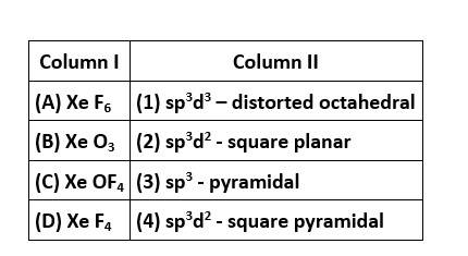 In XeF6, the central Xe atom undergoes sp3d3 hybridisation and the molecular geometry is distorted octahedral with 1 lone pair and 6 bond pairs of electrons.
