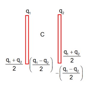 For sphere 'C' -> after contacting with 'A'. qA = qC =