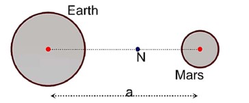 W1 = 1000 N ->Weight of person at surface of earth W2 = 400 N Þ Weight of person at surface of Mars. There will be a neutral point -N where weight will be zero because at this point net gravitational field due to earth and mars is zero.