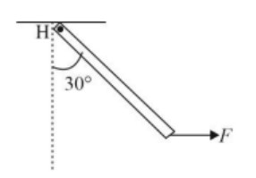 Taking torque at top pt, mg sin30°*L / 2 = F cos30°*L ⇒ F = mg / 2√3