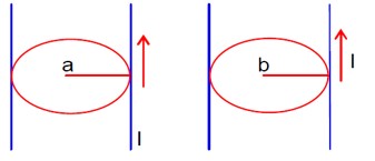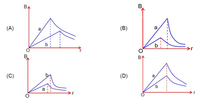 For wire with radius a, B increases linearly to r=a, then decreases. For wire with radius b, B increases linearly to r=b, then decreases. Since a⇒ B? > B?