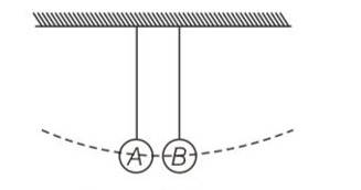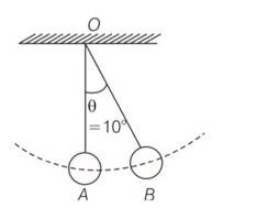 At t=0 suppose bob B is displaced by angle 10 to the right . it is given potential energy E1=E . energy of A, E2=0