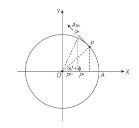 As the particle on reference circle moves in anticlockwise direction. The projection will move from P to O towards left.
