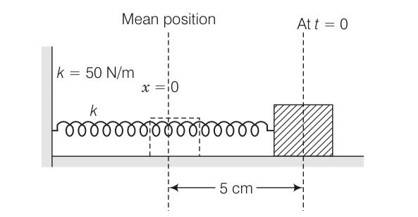 Consider the diagram of the spring block system. It is a SHM with amplitude of 5cm about the mean position
