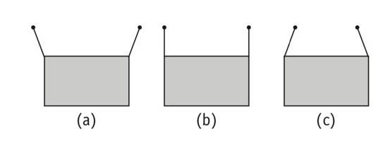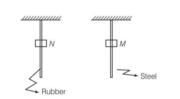 (d) a mass M is attached at the centre. As the mass is attached to both the rods, both rod will be elongated, but due to different elastic properties of material rubber changes shape also.