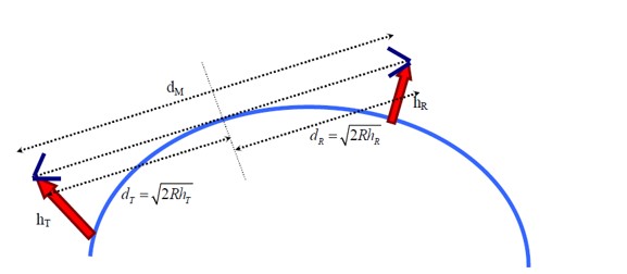 d = √ (2hT R) + √ (2hR R) = 2√ (2hR) (assuming towers are identical)