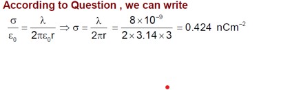 ⇒ σ = 8*10? / (2*3.14*3) = 0.424 nCm? ²