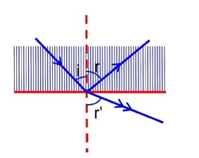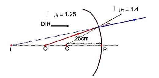 Since direction of incident ray (DIR) is from left to write, so considering refraction at point M, we can write