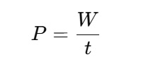 P stands for power, W is for work, t is for time. Power is measured in unit Watt (W) where 1 watt = 1 joule per second. Another unit which is commonly used to measure the power is horsepower (hp), 1hp =746 W.