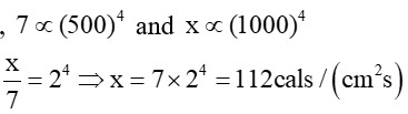 Let rate of heat radiated at (727+ 273) K = xcals/ (cm2s)