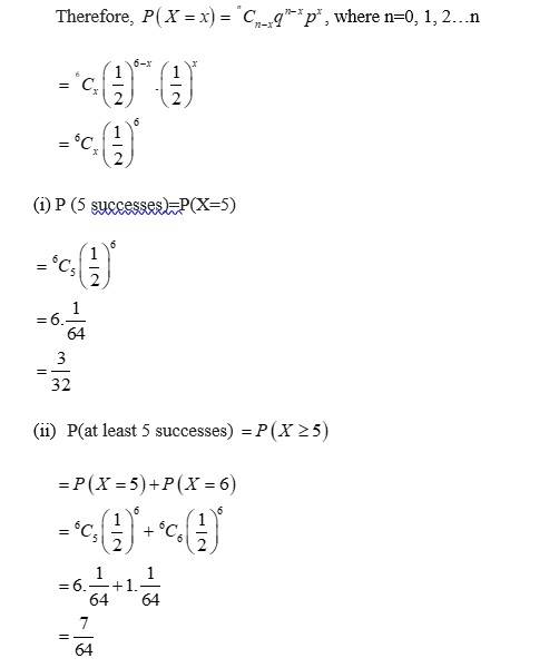 66. The repeated tosses of a die are Bernoulli trials. Let X denote the number of successes of getting odd numbers in an experiment of 6 trials.
