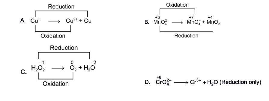 Disproportionation reaction is a reaction in which a substance (element) is simultaneously oxidised and reduced.