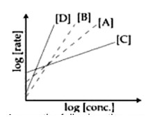 rate=k [Conc]? log [rate]=logk+nlog [Conc]. 'n' is slope. Higher slope, higher order.