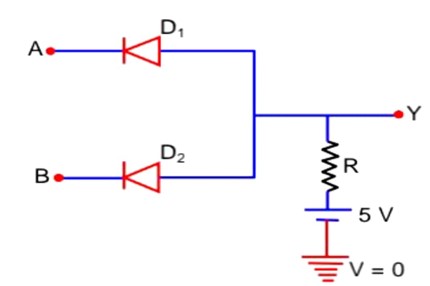 When both A and B have logical value 'l' both diode are reverse bias and current will flow in resistor hence output will be 5 volt i.e. logical value '1'.