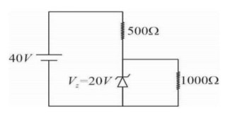 Current through R? , i? = (40-V_z)/R? = 20/500 = 40 mA