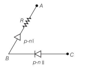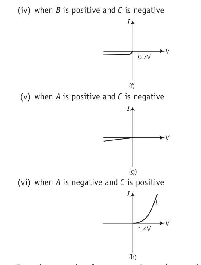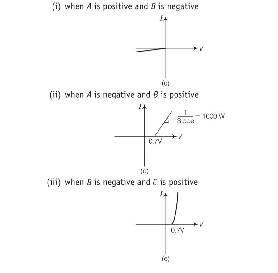 Explanation- a) In V- graph of condition (i), a reverse characteristics is shown in fig. (c). Here A is connected to n - side of p-n junction and B is connected to p -side of p-n junction I with a resistance in series.