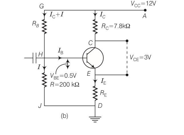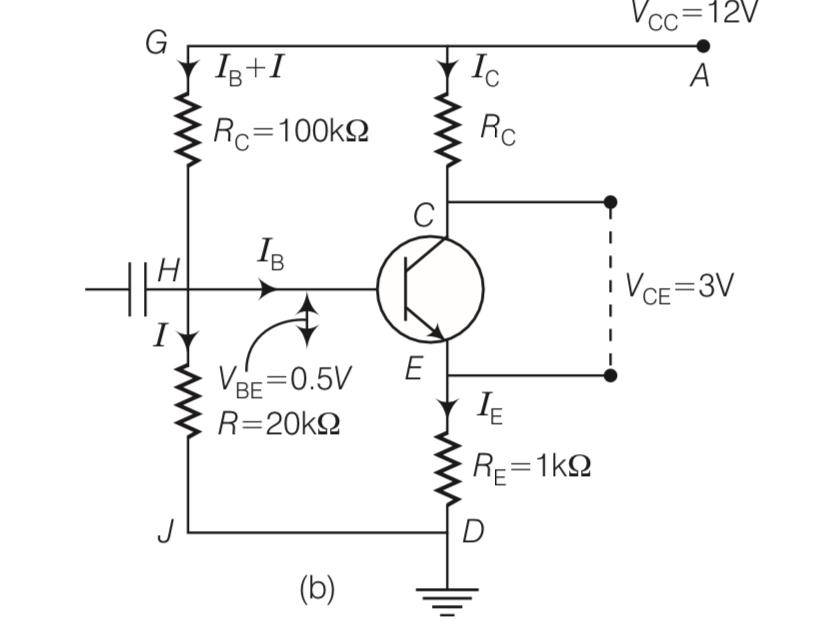 Voltage VB=VE+VBE= 1.2+0.5= 1.7V
