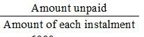 Now, Number of installments =Amount unpaid/Amount of each instalment