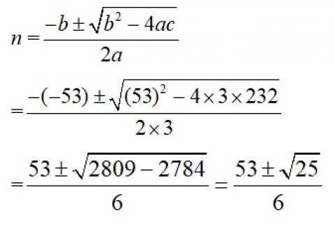 n [2 * 25+ (n – 1) (–3)]=116 * 2