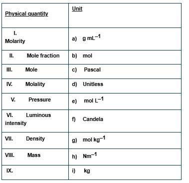 (ii) Mole fraction is defined as the number of moles of a constituent divided by the total number of moles. So, it is unitless.
