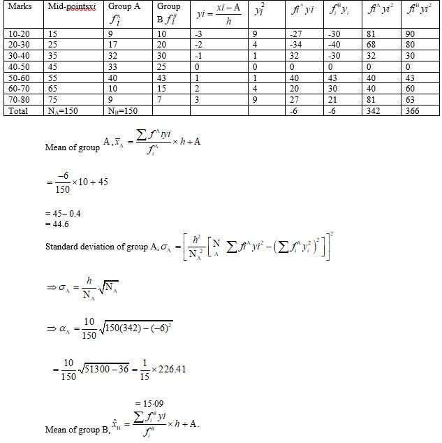 23. Let the assumed mean be A=45 and h=10. Then we can tabulate the given data as following.