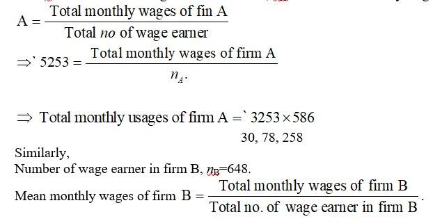 (i) The number of wage earner in firm A, nA=586. Mean monthly wages of firm