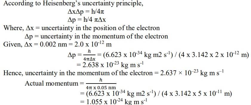 Since actual momentum is smaller than the uncertainty in measuring momentum, therefore, the momentum of electron cannot be defined