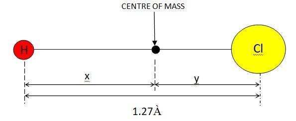 Let us assume that the centre of mass of the given molecule lies at the origin. Therefore,