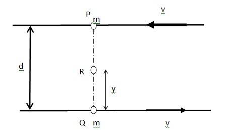 Let at certain instant two particles be at points P and Q, as shown in the figure.