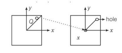 (c) First the centre of mass of the system was on the dotted line and was shifted towards Q from the centre. When mass is removed it will be on the same line but shifed away from the centre and below 3rd quadrant.