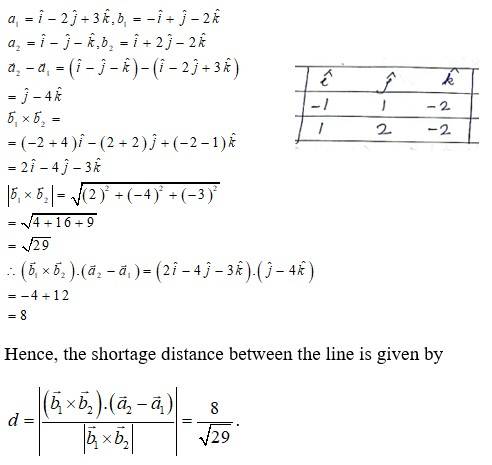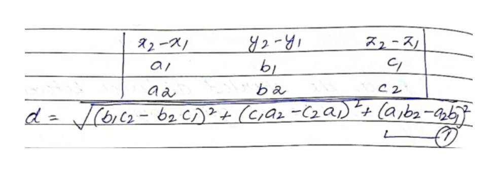 Shortest distance between two lines is given by,