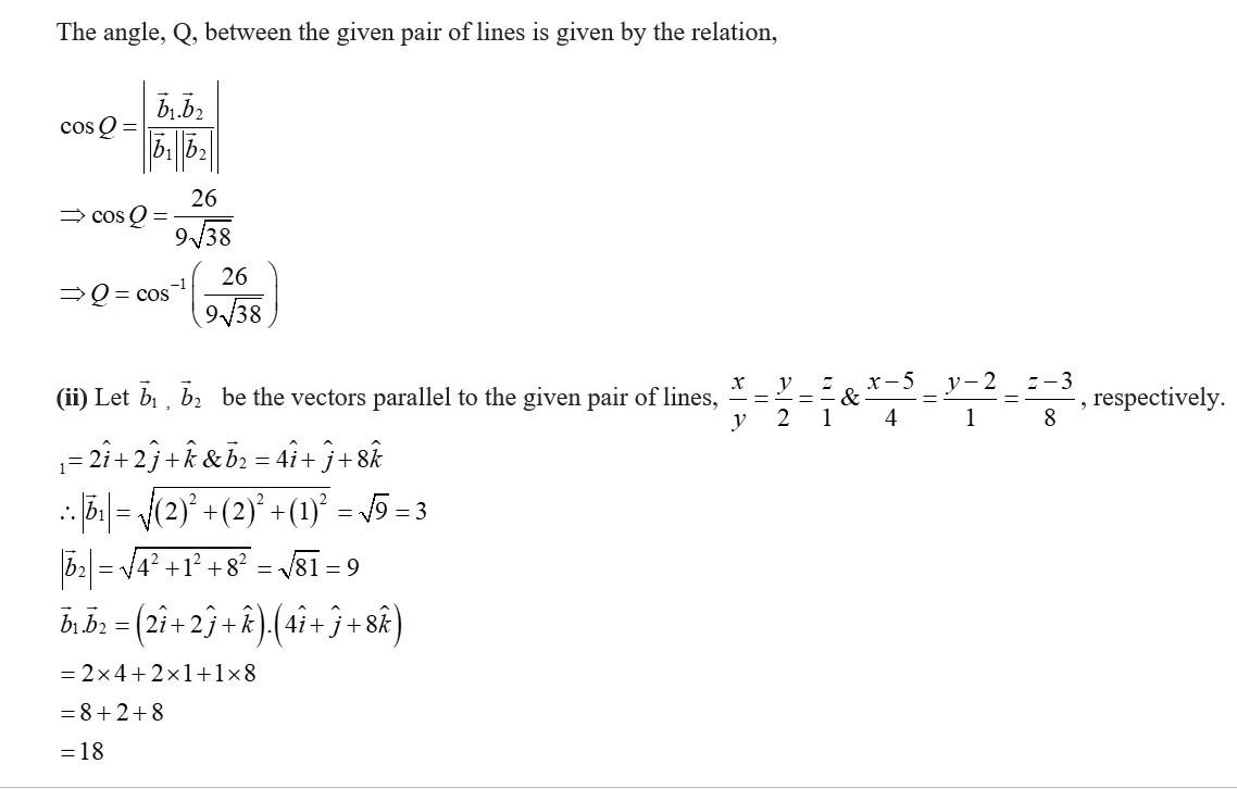 (i) Let and be the vectors parallel to the pair of lines, , respectively.