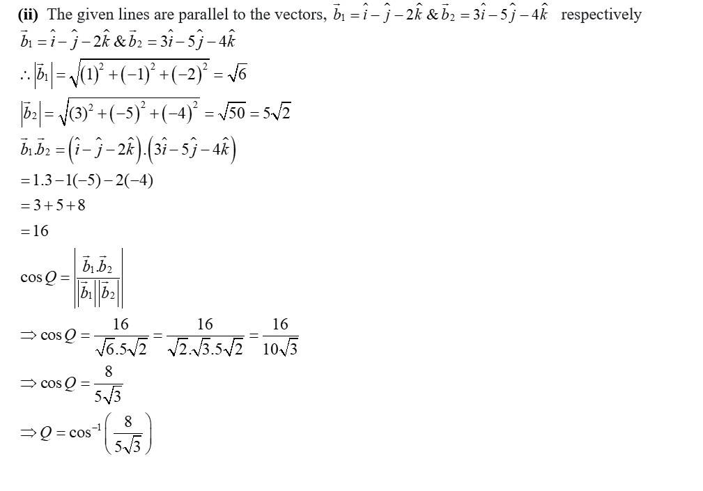(i) Let Q be the angle between the given lines.
