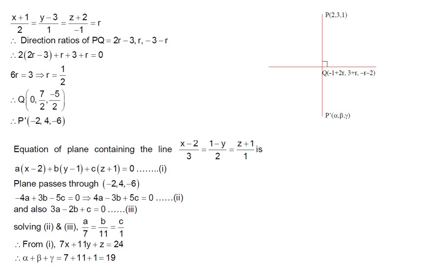 Let this be equal to k. So, a point on the line is (k+2, k+1, -2k+6).