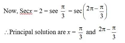 We have, Secx = 2, | Secx is (+)ve the principal solution lies in Ist and IVthquadrent.