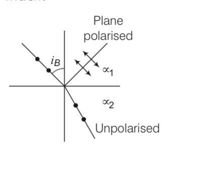 Explanation- When angle of incidence is equal to Brewster's angle, the transmitted light is unpolarised and reflected light is plane polarised.