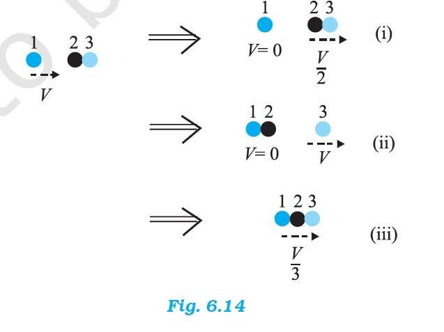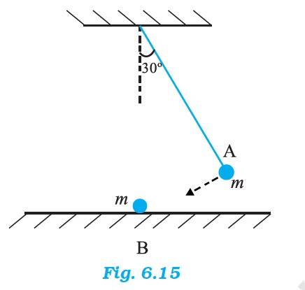6.17 In an elastic collision, when the ball A will hit the ball B, A comes to rest immediately and the ball B acquires the velocity of ball A. The momentum thus gets transferred from a moving body to a stationary body.