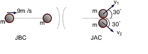 Using conversation of momentum in direction perpendicular to the original direction of motion,