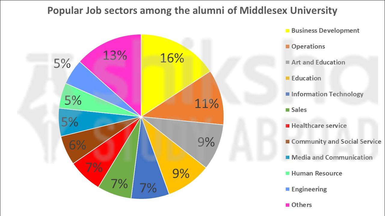 Check below some popular job sectors among the pass out students of Middlesex Uni given below as per the alumni data :